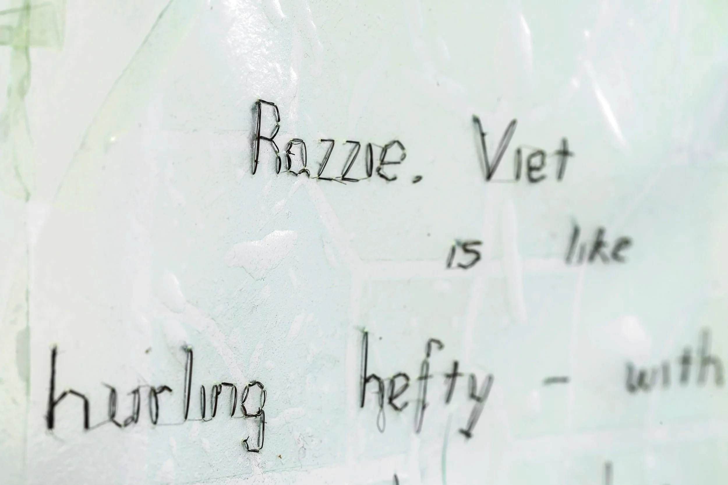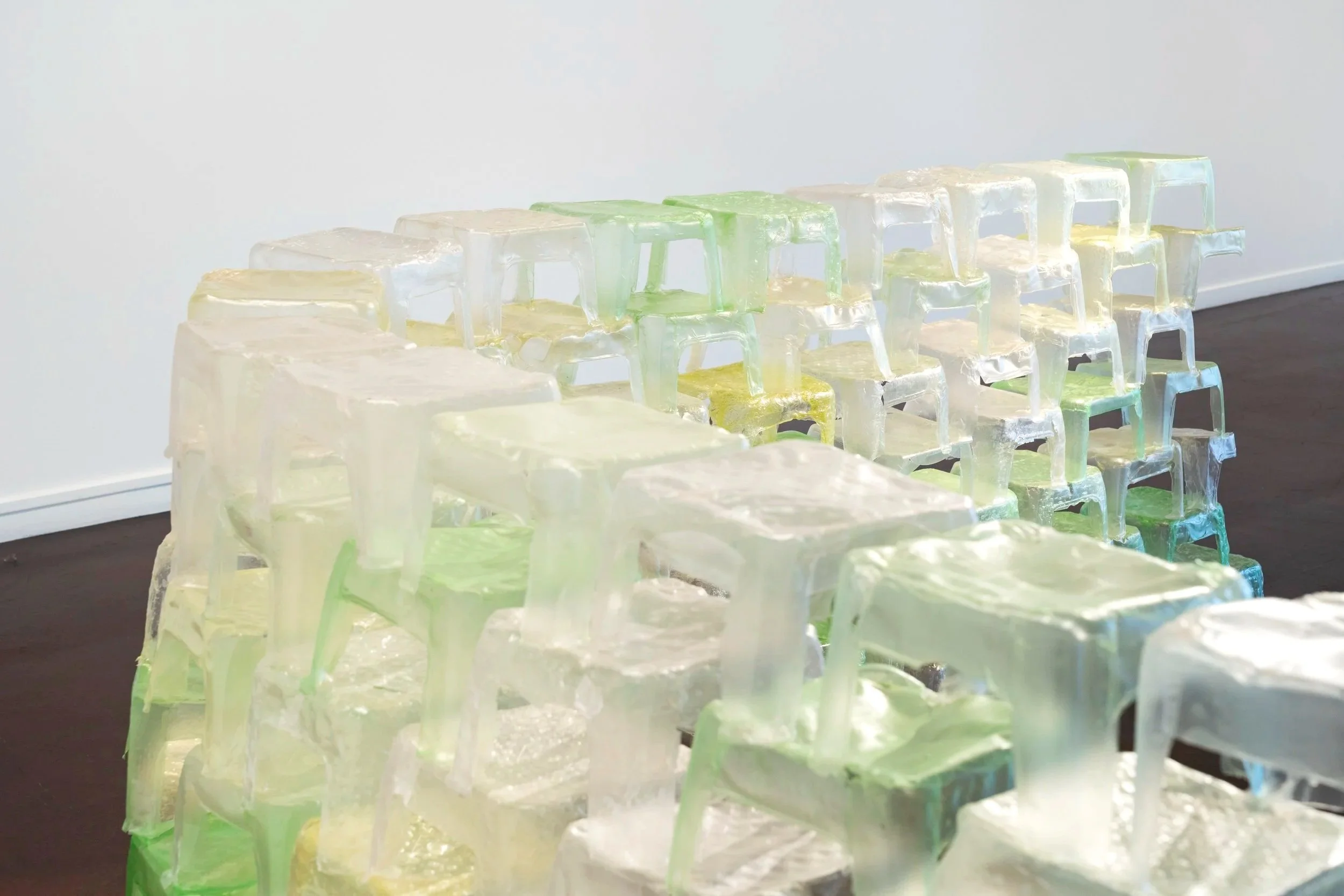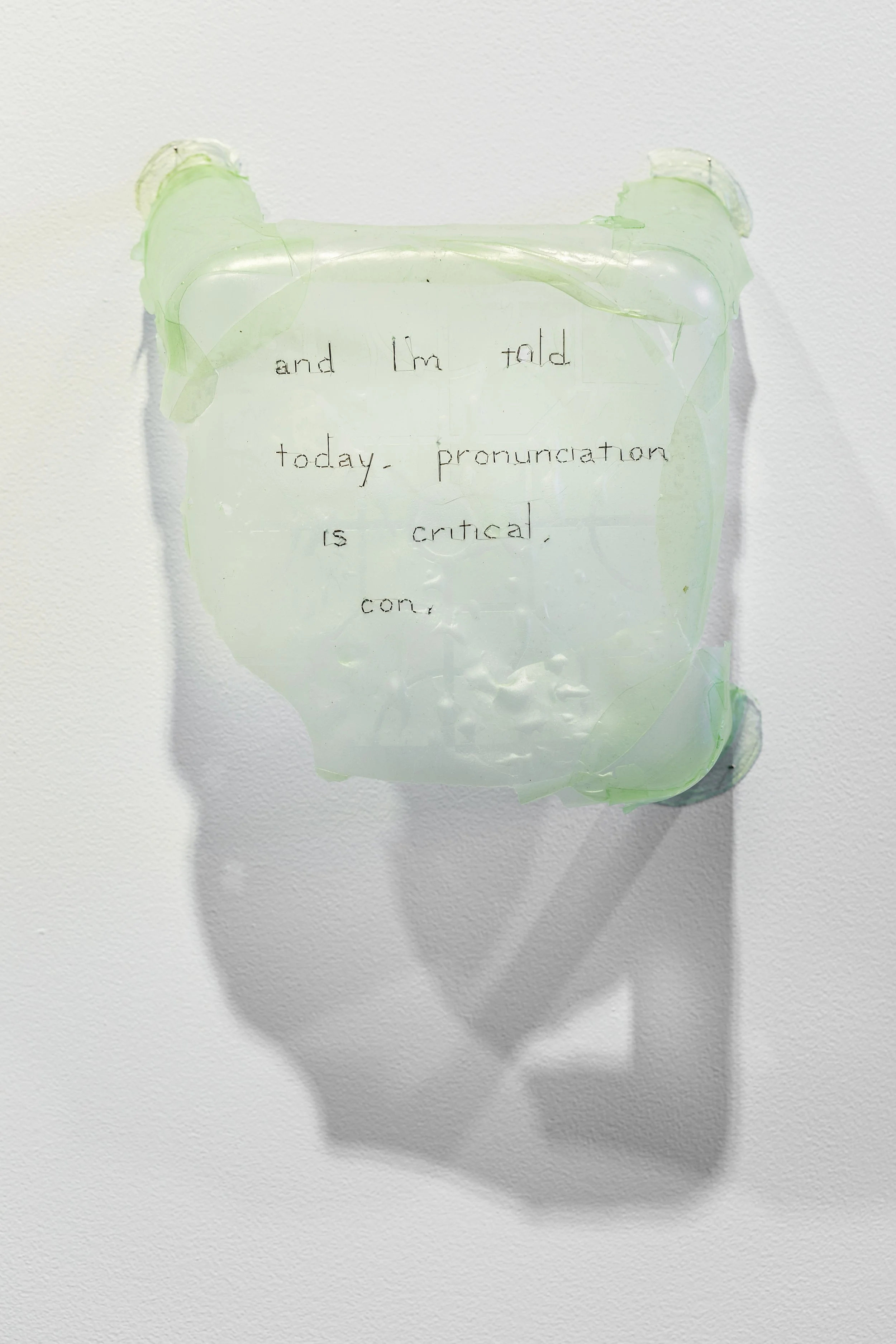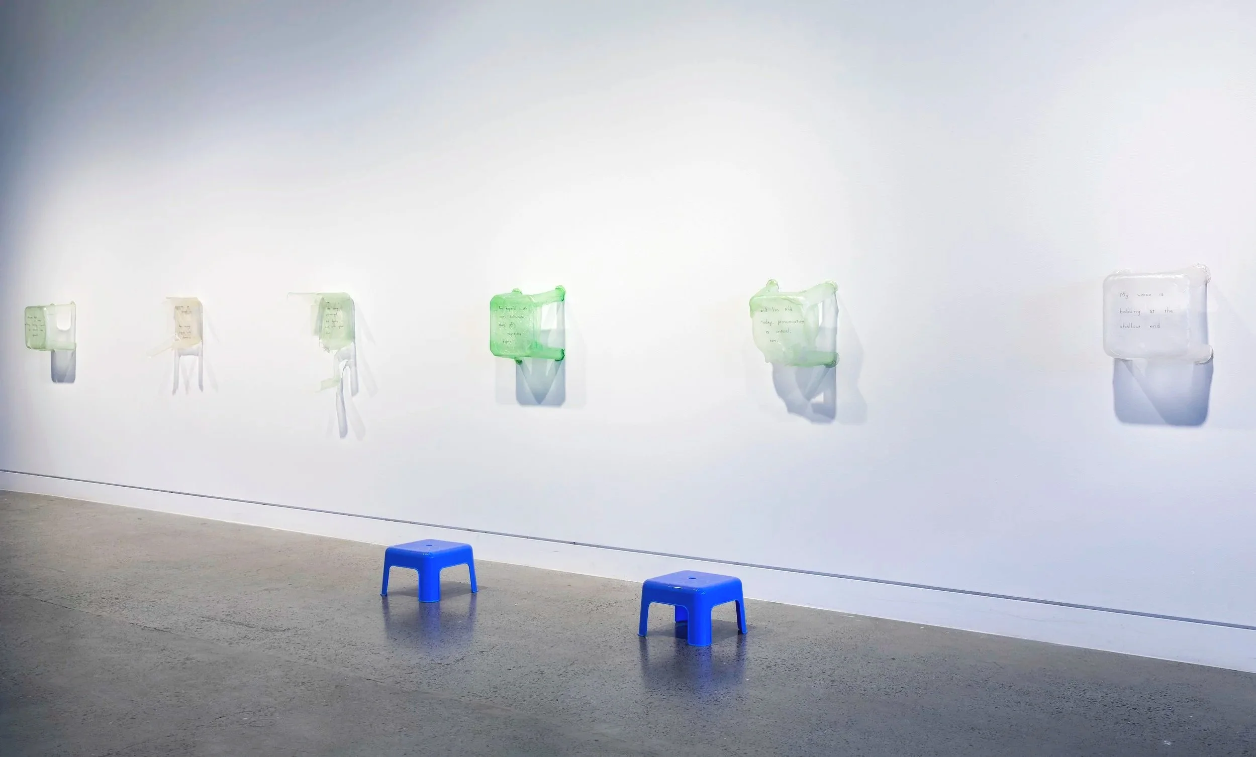 Squat tossed (still), 2026, Vietnamese rice paper, artificial pandan extract, Ipswich Community Gallery.